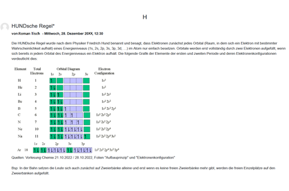 Die von Studierenden zu speziellen Vertiefungsthemen innerhalb einer Veranstaltung erstellten und nach Korrektur oder Peer-Review überarbeiteten Hausarbeiten können in den nachfolgenden Jahrgängen zum Beispiel als Vorbereitungsmaterialien für ein Flipped-Classroom-Szenario genutzt werden.