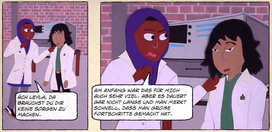In Comics, insbesondere in solchen, die mit der Cut-Out-Technik gestaltet werden, lassen sich Diversitätsdimensionen wie Alter, Geschlecht und geschlechtliche Identität, ethnische und soziale Herkunft, Fähigkeiten, Religion und Weltanschauung sensibel abbilden (Legscha, Ibraj & Prechtl 2024). Die beiden folgenden Links führen Sie zu Cut-Out-Science-Comics, in denen genau darauf Wert gelegt wurde: Link (wird in neuem Tab geöffnet) , Link (wird in neuem Tab geöffnet) . Comics sind insofern wirkmächtig, als sie Role Models erschaffen können, die Stereotypen sprengen. Eine Annäherung an die Frage, wie Comicfiguren auf Leser*innen wirken und ob sie das Potenzial zum Role Model haben, erfolgte, anhand der verlinkten Exempel, vermittels Gruppendiskussion (Jesserich 2022) und Fragebogenerhebung (vgl. Prechtl 2024). Die Befundlage stimmt zuversichtlich.